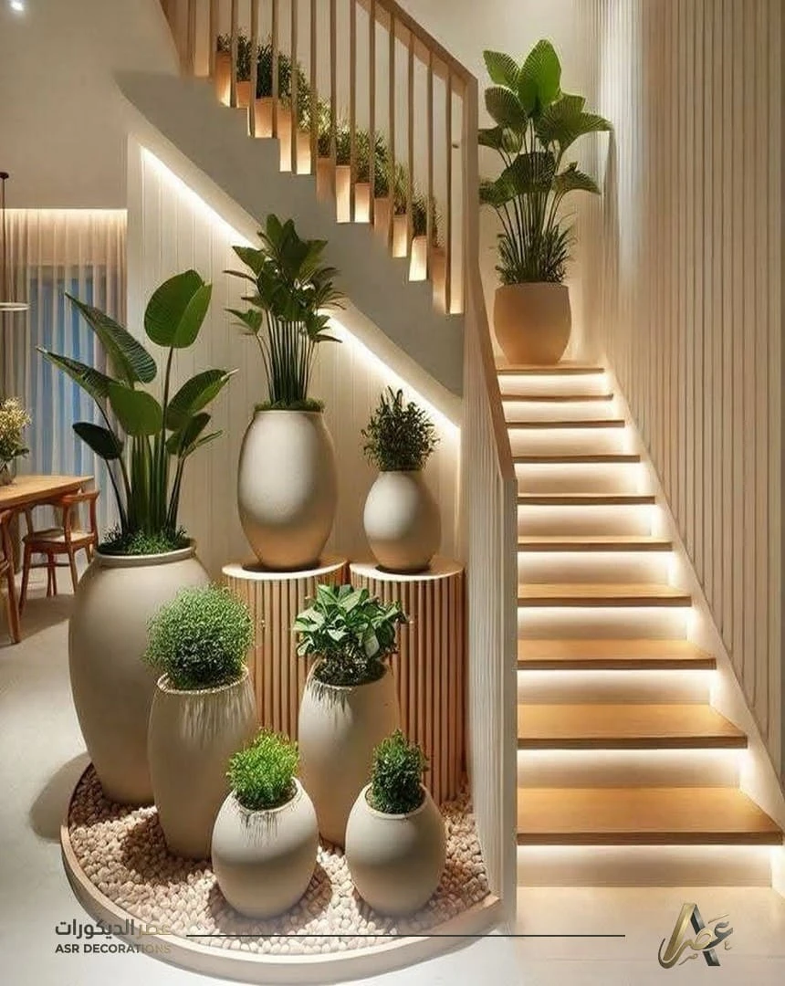 من الأخطاء الشائعة التي يقع فيها بعض بيوت الخبر والشرقية، هو عدم عمل ديكور تحت الدرج الخبر، وإبقاء المساحة تحت الدرج بدون استغلال حقيقي. رغم أنها من أهم الزوايا القابلة للتحويل إلى عنصر جمالي عملي. وعمل ديكور حديقة تحت الدرج هو من أكثر الحلول الذكية طلب هذه الأيام، لأنه يجمع بين الفخامة والاستفادة القصوى من المساحات. كما أن هذا النوع من الديكور يعطي المنزل لمسة عصرية راقية، ويضيف قيمة واضحة للتصميم الداخلي.
