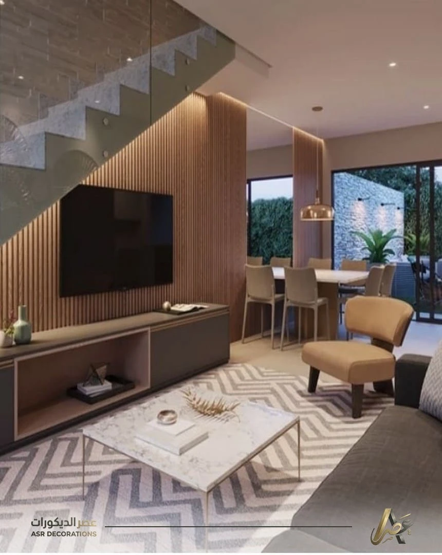 كما أن اختيار الإضاءة، وتوزيع العناصر، وتحديد الاستخدام الأساسي كلها عوامل تصنع الفرق الحقيقي. ولهذا عندما يتم تنسيق ديكور أسفل الدرج بطريقة احترافية، يظهر المكان أكثر ترتيب وفخامة. كما يمنح البيت إحساس بالاتساع والراحة، خاصة عند دمج الخشب أو الرفوف أو حتى ديكور التلفاز بشكل مدروس.