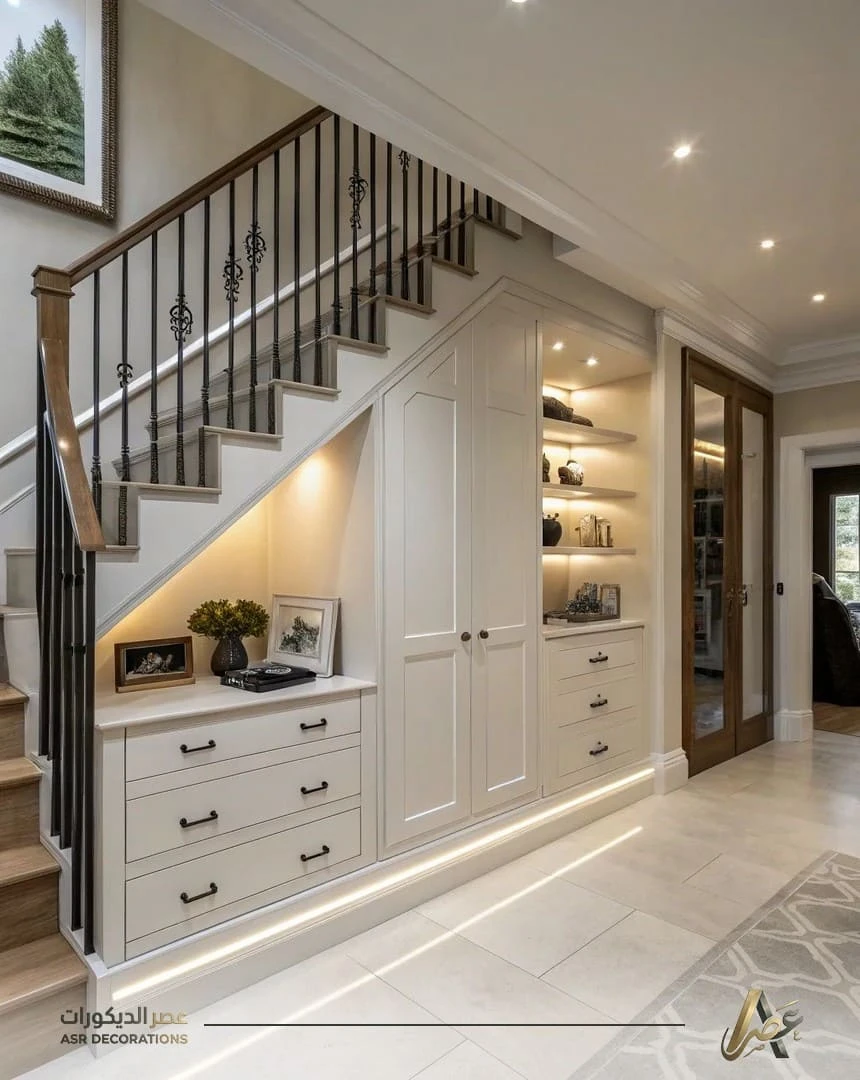 إذا كنت تفكر باستغلال المساحة تحت الدرج وعمل ديكور تحت الدرج الخبر بأسلوب أنيق وعملي، فلا تتردد بالتواصل معنا اليوم، ودعنا نساعدك بتصميم يليق بذوقك ويضيف لمسة فخامة حقيقية لمنزلك.