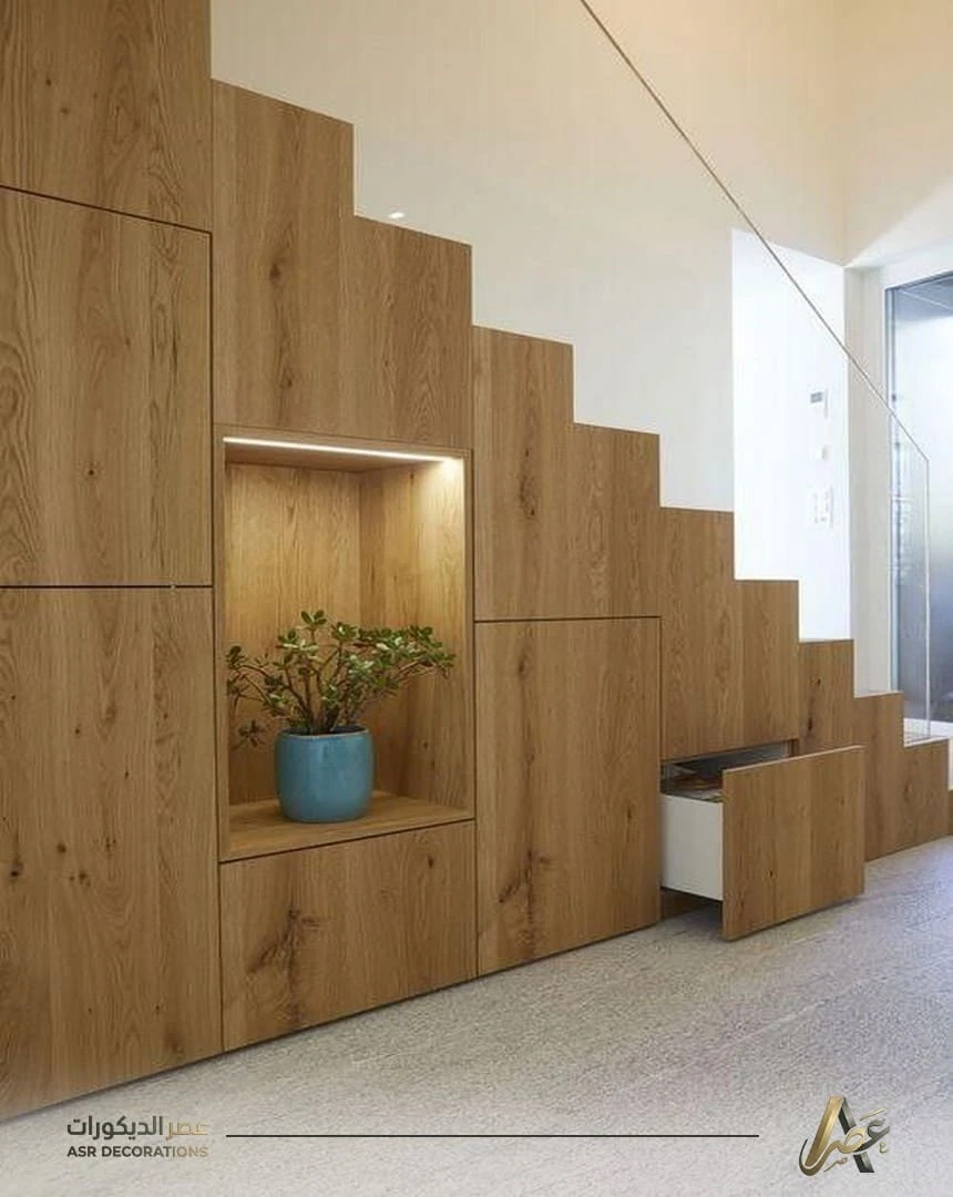 ديكور خشب تحت الدرج في سيهات … فخامة طبيعية تدوم