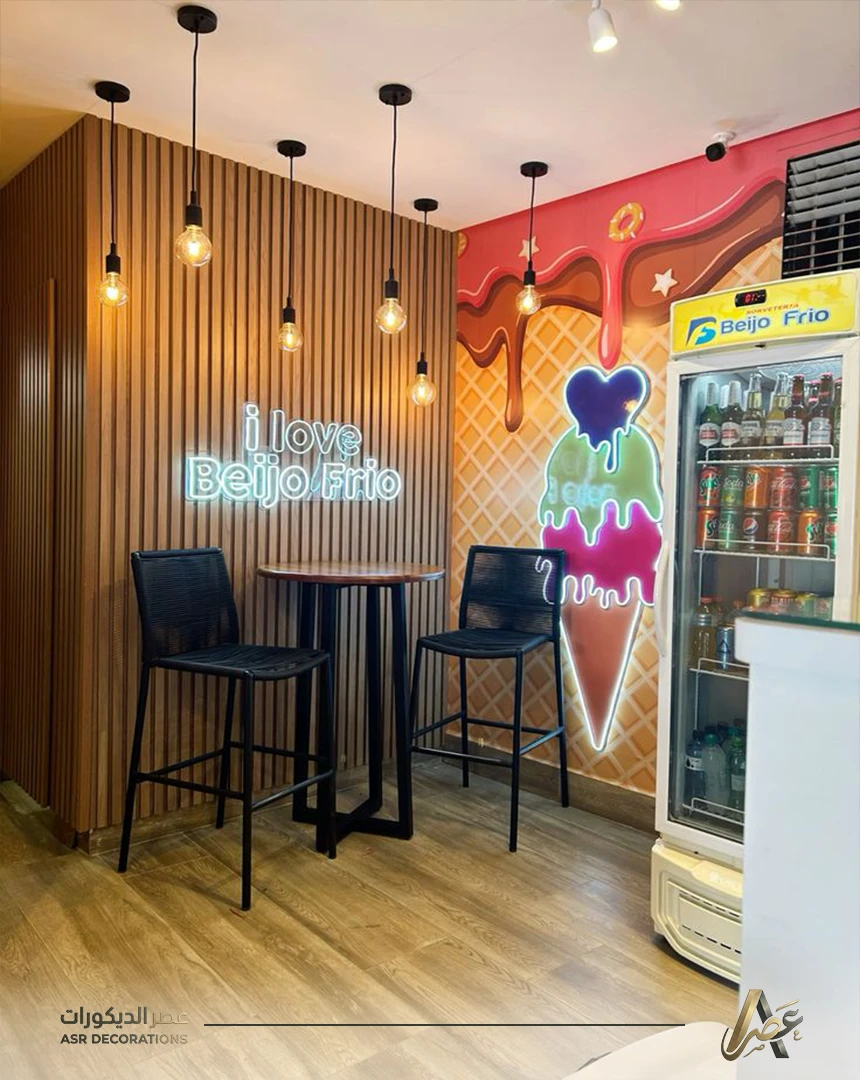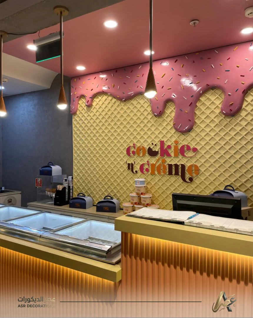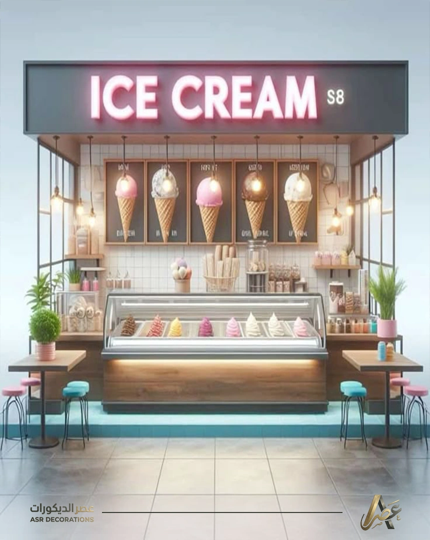 تجهيز محلات ايس كريم وعصائر من اهم الخدمات التي يقدمها معلم ديكورات الشرقية حيث أنه يقوم بذلك بشكل شامل ومتكامل ومن أشهر الأفكار التي يتم تنفيذها ما يأتي: